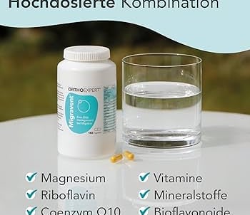Neben Riboflavin enthält das Produkt Magnesium in einer Menge von 600 Milligramm pro Tag. Magnesium ist ein echter Alleskönner: Es entspannt die Blutgefäße, reguliert den Nervenimpuls und wirkt krampflösend. Viele Migränepatienten haben einen versteckten Magnesiummangel, der durch Stress und ungesunde Ernährung verstärkt wird.